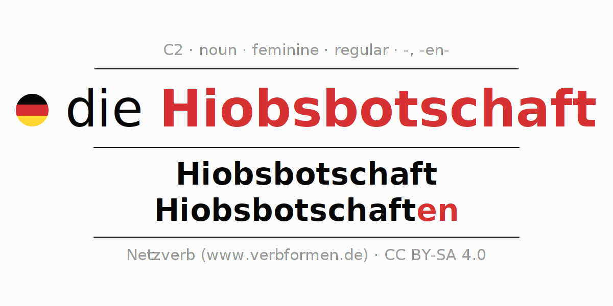 - Singular: die Hiobsbotschaft, der Hiobsbotschaft, der Hiobsbotschaft, die Hiobsbotschaft