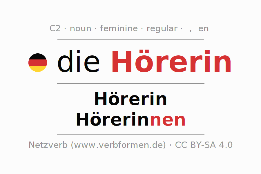 - Plural: die Hörerinnen, der Hörerinnen, den Hörerinnen, die Hörerinnen