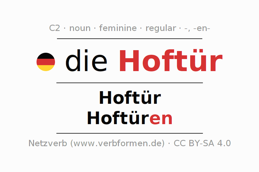 - Singular: die Hoftür, der Hoftür, der Hoftür, die Hoftür