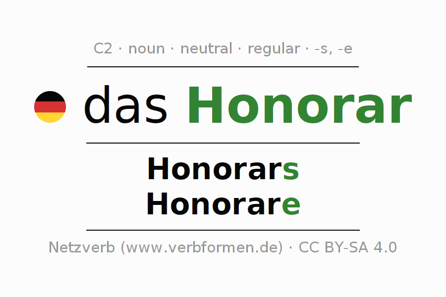 - Plural: die Honorare, der Honorare, den Honoraren, die Honorare
