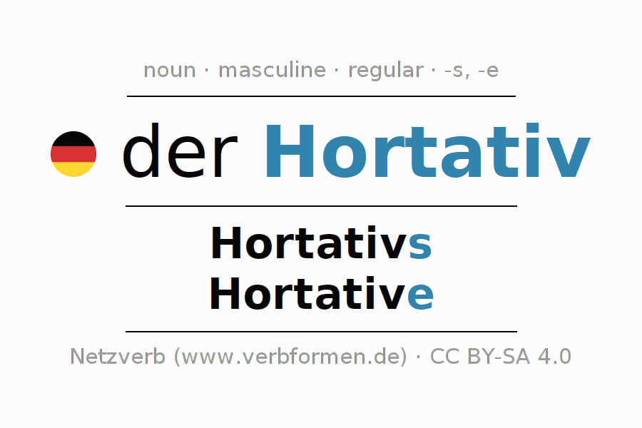 - Singular: der Hortativ, des Hortativs, dem Hortativ, den Hortativ