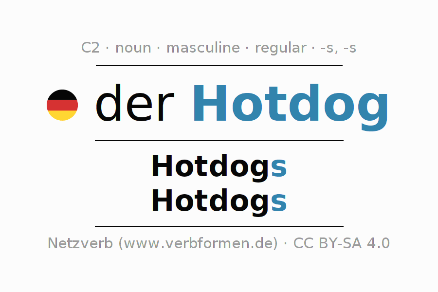 - Singular: der Hotdog, des Hotdogs, dem Hotdog, den Hotdog