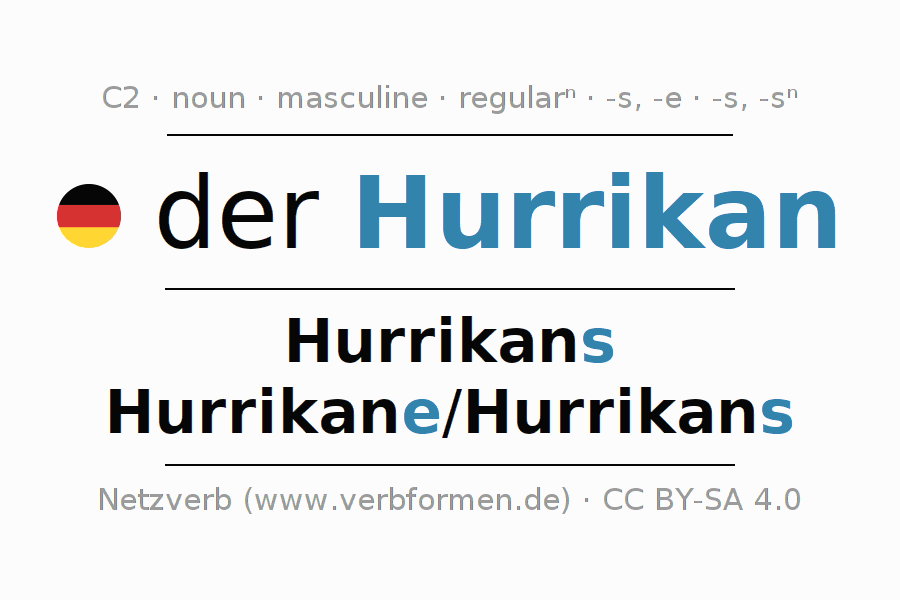 - Singular: der Hurrikan, des Hurrikans, dem Hurrikan, den Hurrikan