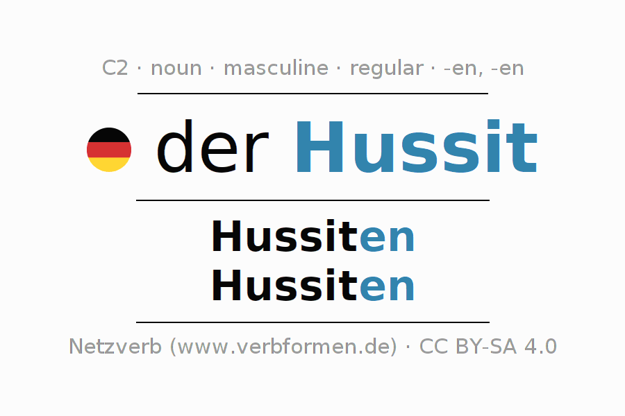 - Plural: die Hussiten, der Hussiten, den Hussiten, die Hussiten