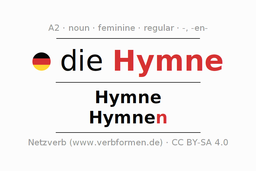 - Singular: die Hymne, der Hymne, der Hymne, die Hymne