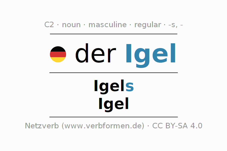 - Singular: der Igel, des Igels, dem Igel, den Igel