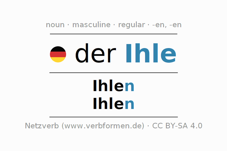 - Plural: die Ihlen, der Ihlen, den Ihlen, die Ihlen