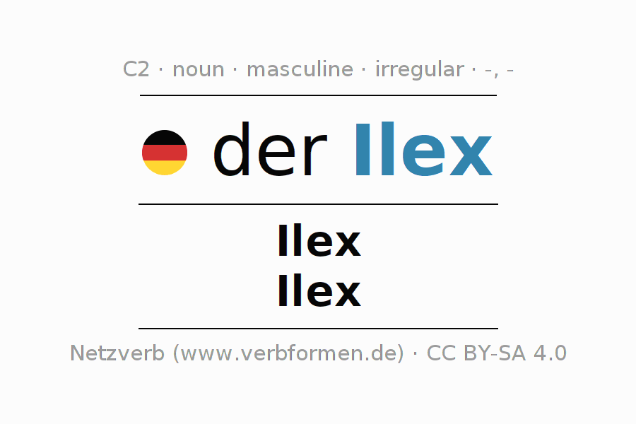 - Plural: die Ilex, der Ilex, den Ilex, die Ilex
