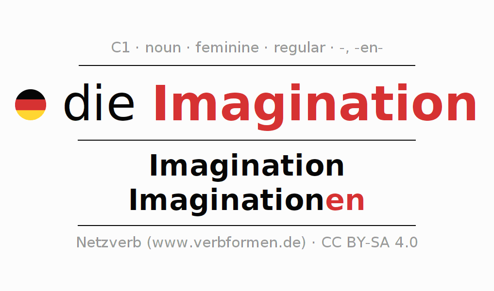 - Singular: die Imagination, der Imagination, der Imagination, die Imagination