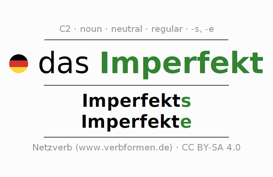 - Plural: die Imperfekte, der Imperfekte, den Imperfekten, die Imperfekte