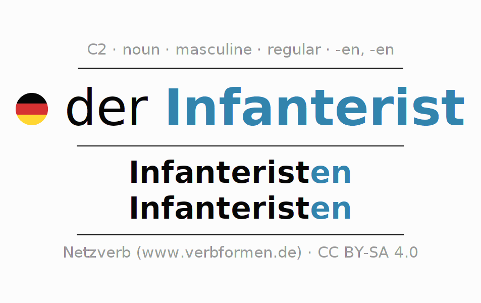 - Plural: die Infanteristen, der Infanteristen, den Infanteristen, die Infanteristen