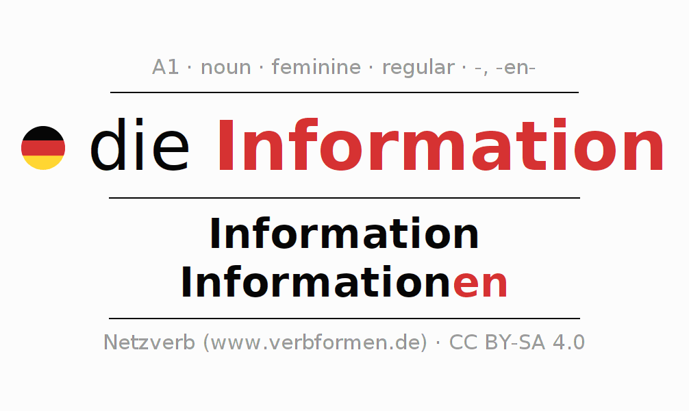 - Plural: die Informationen, der Informationen, den Informationen, die Informationen