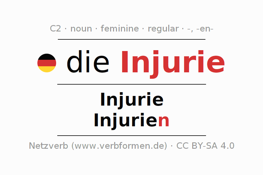 - Plural: die Injurien, der Injurien, den Injurien, die Injurien