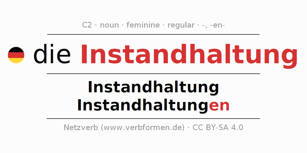 - Singular: die Instandhaltung, der Instandhaltung, der Instandhaltung, die Instandhaltung