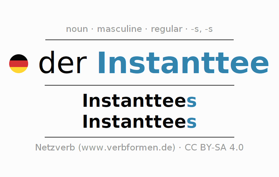 - Singular: der Instanttee, des Instanttees, dem Instanttee, den Instanttee