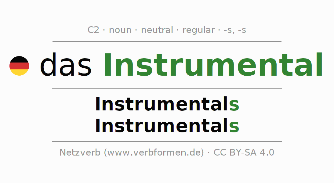 - Singular: das Instrumental, des Instrumentals, dem Instrumental, das Instrumental