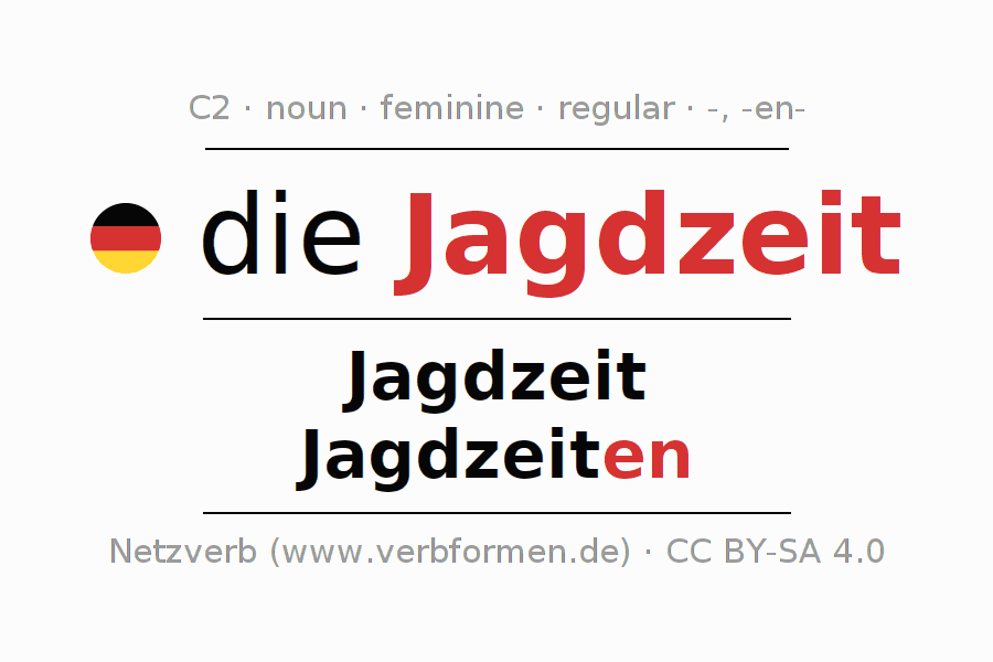 - Singular: die Jagdzeit, der Jagdzeit, der Jagdzeit, die Jagdzeit