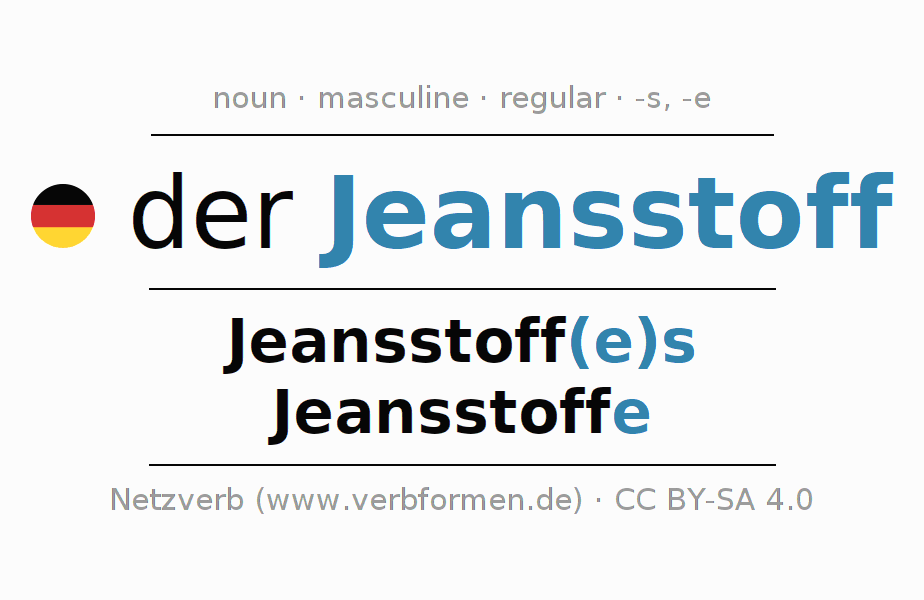 | Dat. | dem Jeansstoff(e) | den Jeansstoffen |