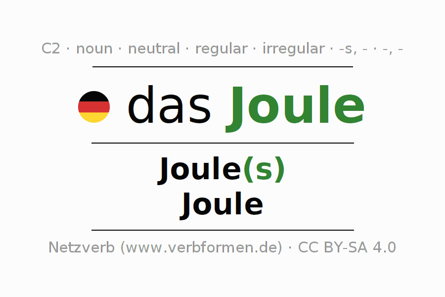 - Plural: die Joule, der Joule, den Joule, die Joule