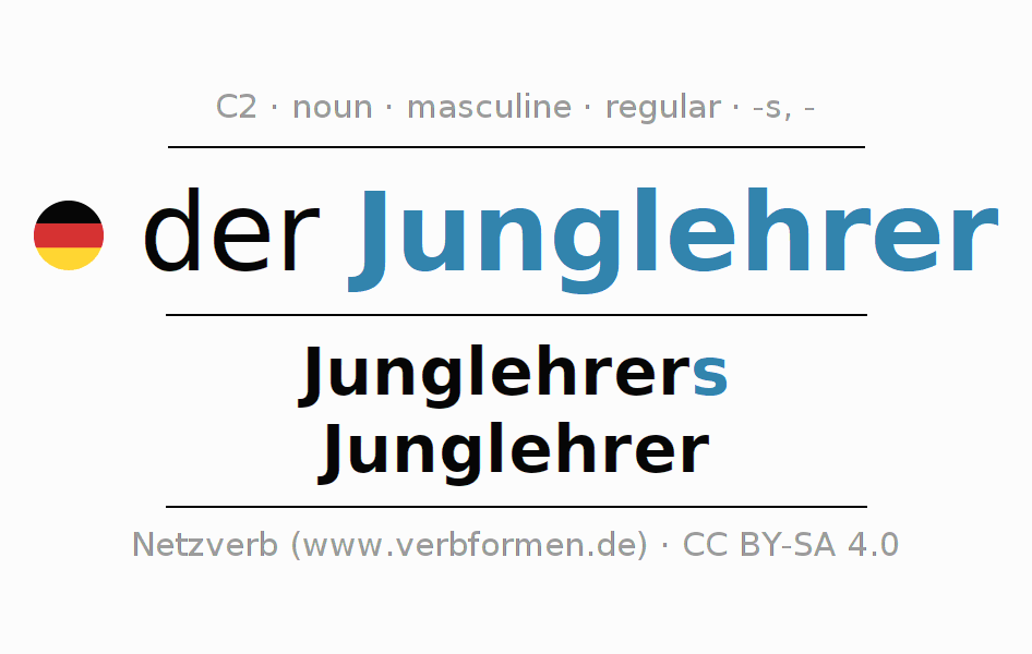 - Singular: der Junglehrer, des Junglehrers, dem Junglehrer, den Junglehrer