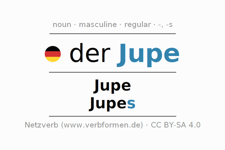 - Singular: der Jupe, des Jupe, dem Jupe, den Jupe