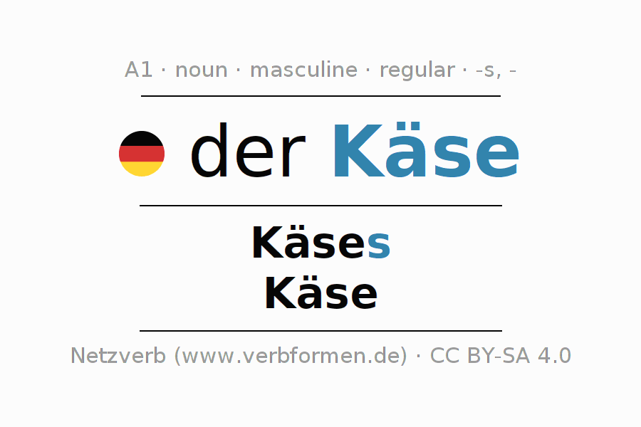 - Singular: der Käse, des Käses, dem Käse, den Käse