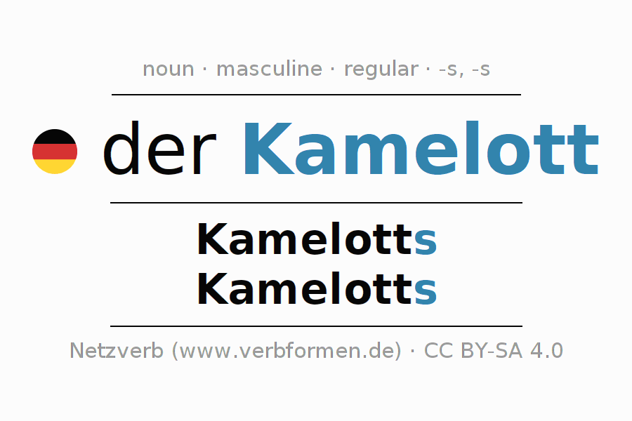 - Singular: der Kamelott, des Kamelotts, dem Kamelott, den Kamelott