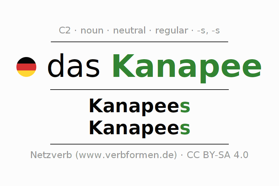 - Singular: das Kanapee, des Kanapees, dem Kanapee, das Kanapee