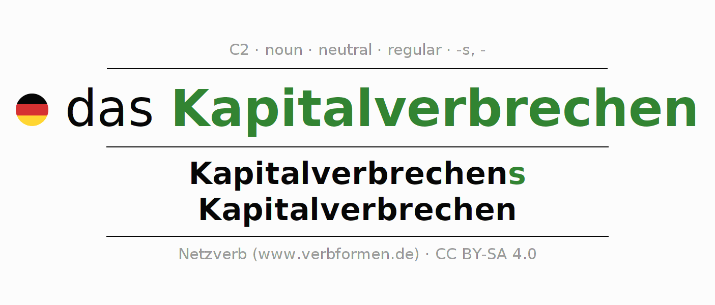 - Singular: das Kapitalverbrechen, des Kapitalverbrechens, dem Kapitalverbrechen, das Kapitalverbrechen