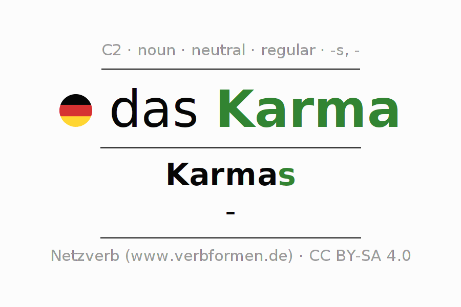 - Singular: das Karma, des Karmas, dem Karma, das Karma