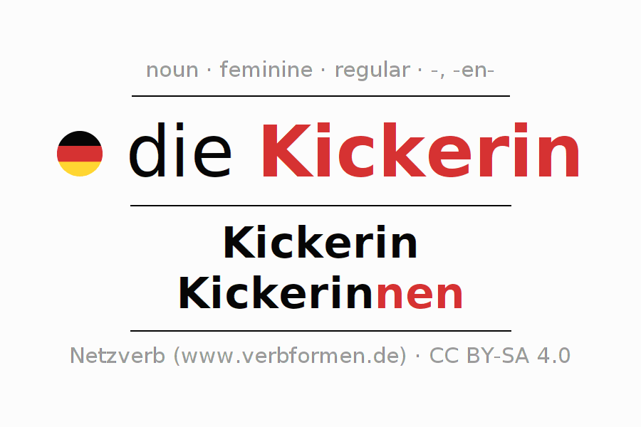 - Singular: die Kickerin, der Kickerin, der Kickerin, die Kickerin