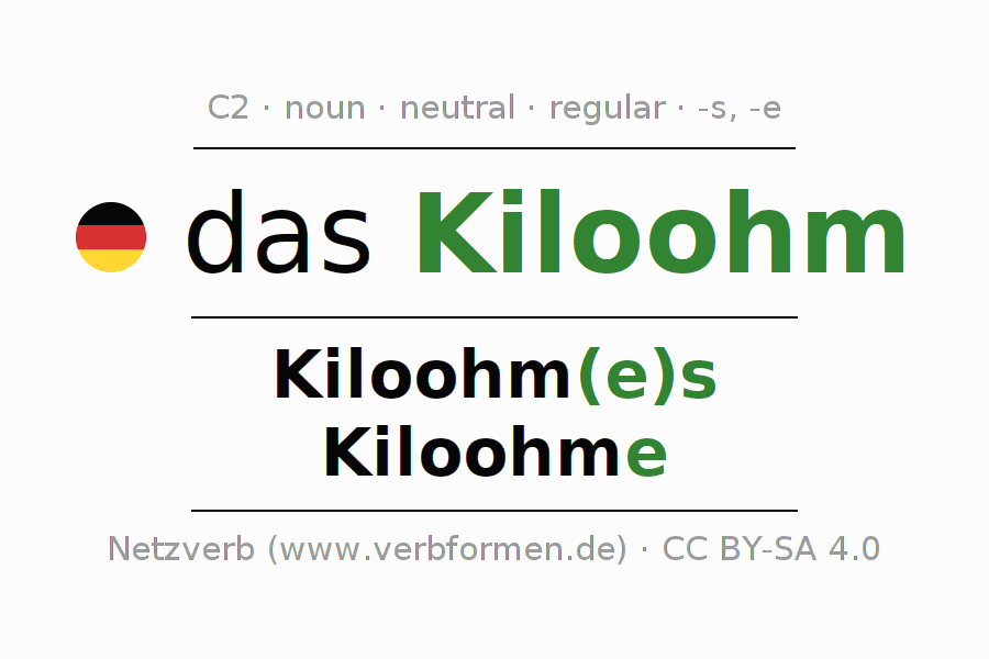 - Plural: die Kiloohme, der Kiloohme, den Kiloohmen, die Kiloohme