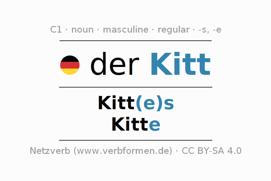 - Singular: der Kitt, des Kitt(e)s, dem Kitt(e), den Kitt