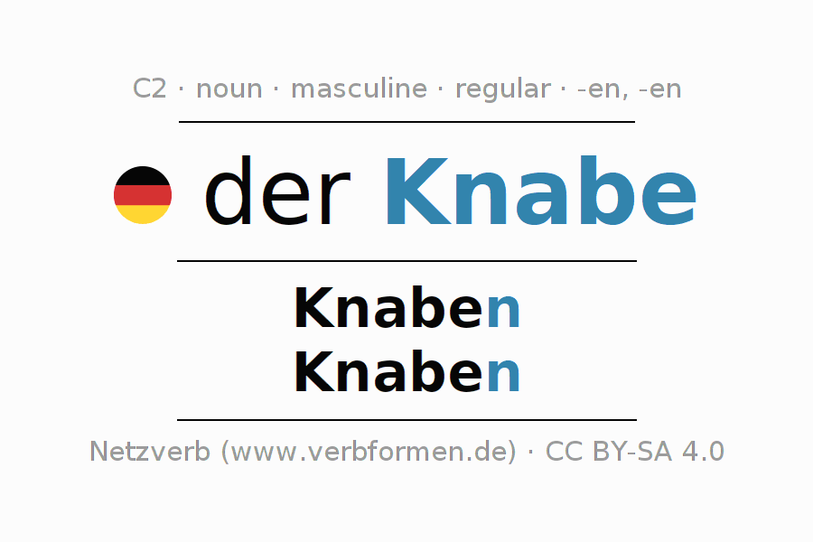 - Singular: der Knabe, des Knaben, dem Knaben, den Knaben