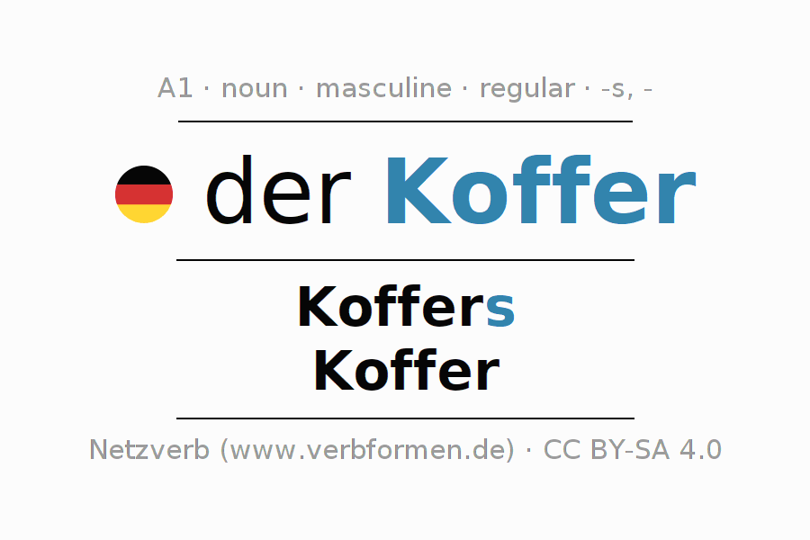 - Plural: die Koffer, der Koffer, den Koffern, die Koffer