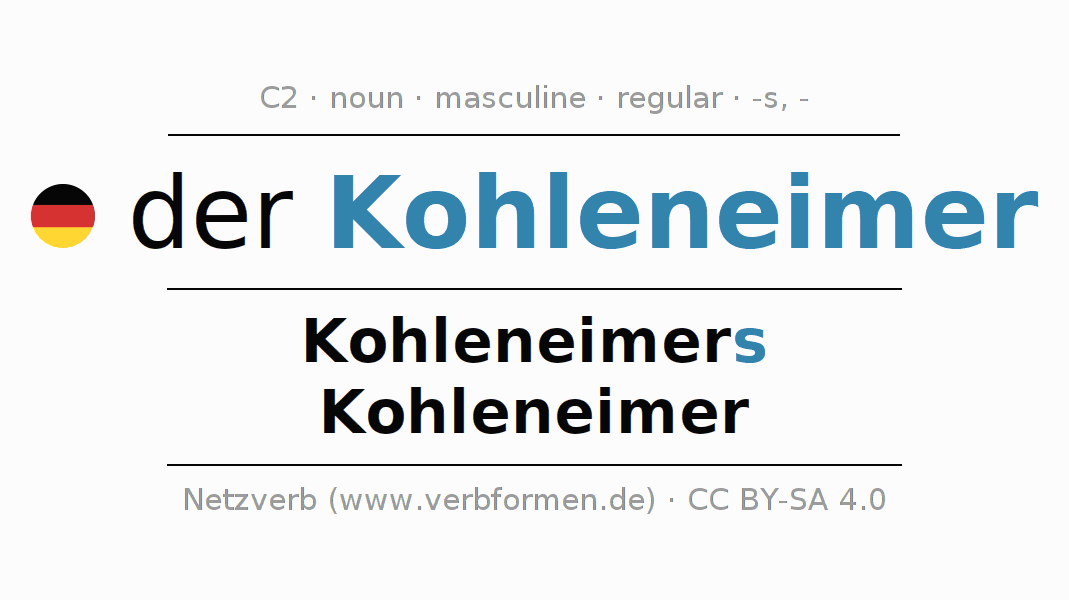 - Singular: der Kohleneimer, des Kohleneimers, dem Kohleneimer, den Kohleneimer