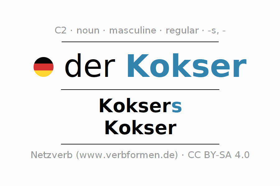 - Singular: der Kokser, des Koksers, dem Kokser, den Kokser