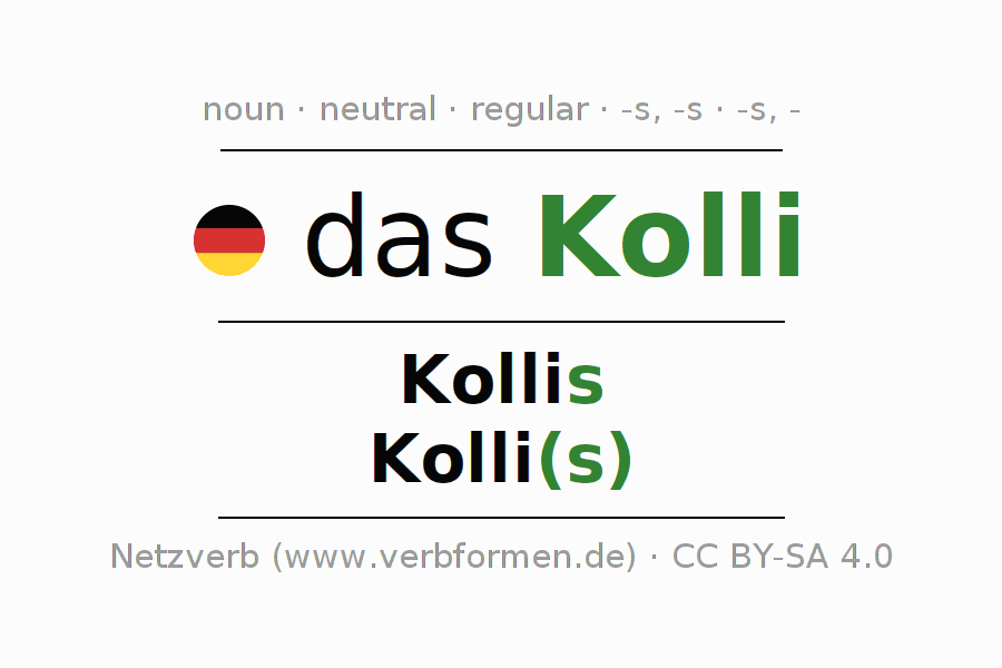 - Singular: das Kolli, des Kollis, dem Kolli, das Kolli
