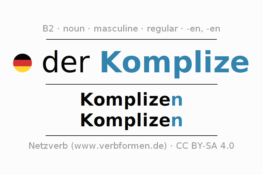 - Singular: der Komplize, des Komplizen, dem Komplizen, den Komplizen