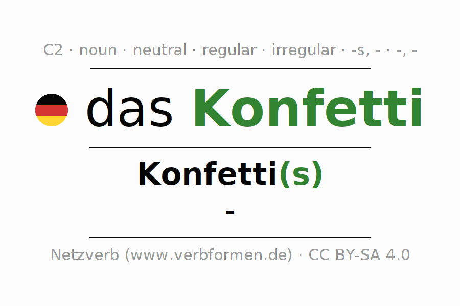 - Singular: das Konfetti, des Konfetti(s), dem Konfetti, das Konfetti