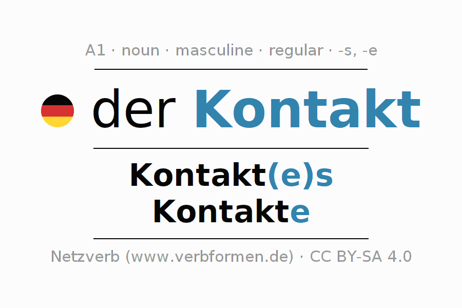 - Plural: die Kontakte, der Kontakte, den Kontakten, die Kontakte
