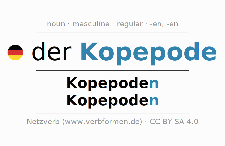 - Plural: die Kopepoden, der Kopepoden, den Kopepoden, die Kopepoden