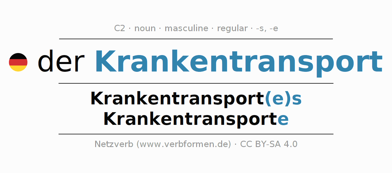 - Plural: die Krankentransporte, der Krankentransporte, den Krankentransporten, die Krankentransporte