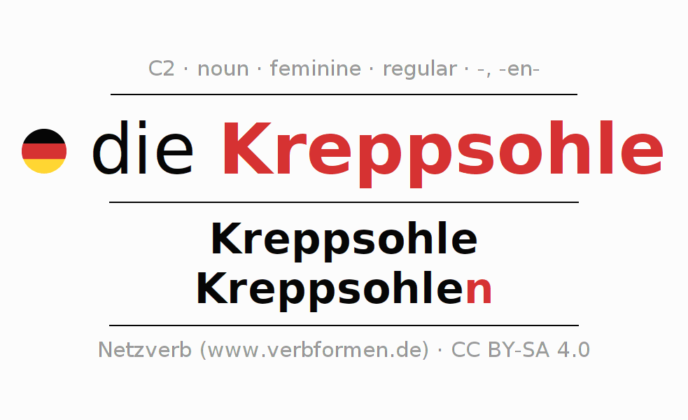 - Plural: die Kreppsohlen, der Kreppsohlen, den Kreppsohlen, die Kreppsohlen