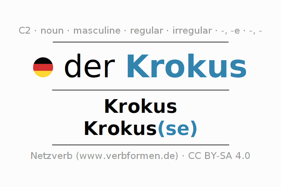 - Singular: der Krokus, des Krokus, dem Krokus, den Krokus