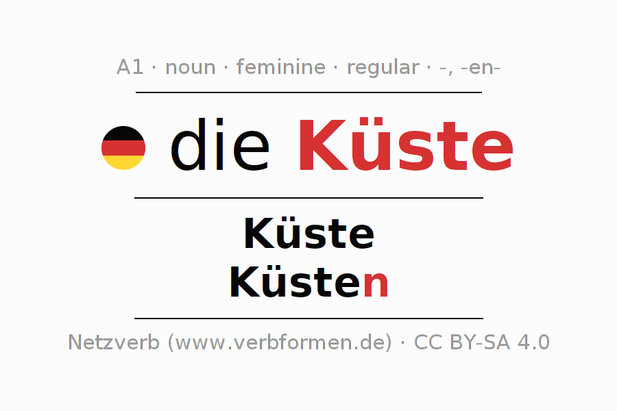 - Singular: die Küste, der Küste, der Küste, die Küste