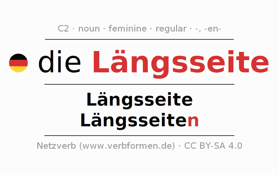 - Plural: die Längsseiten, der Längsseiten, den Längsseiten, die Längsseiten