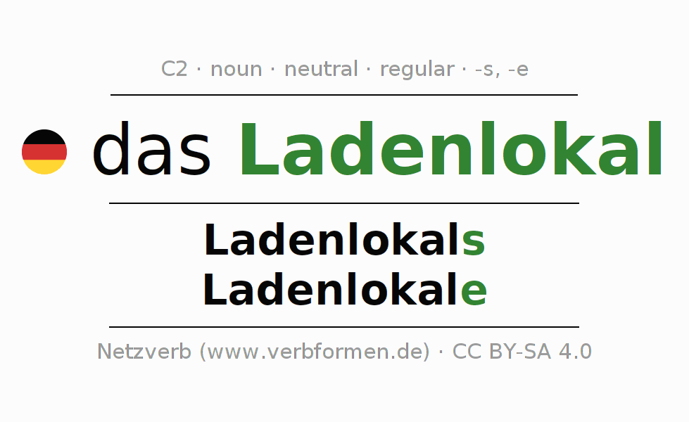 - Plural: die Ladenlokale, der Ladenlokale, den Ladenlokalen, die Ladenlokale
