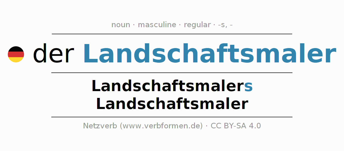 - Singular: der Landschaftsmaler, des Landschaftsmalers, dem Landschaftsmaler, den Landschaftsmaler