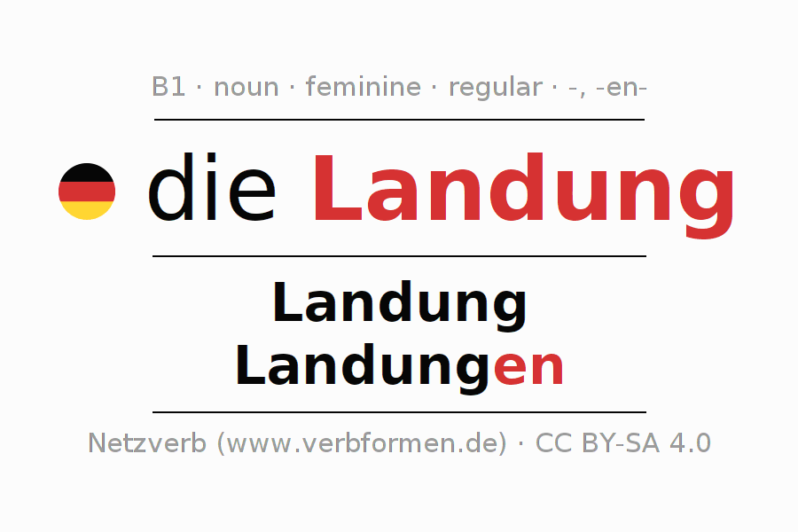 - Singular: die Landung, der Landung, der Landung, die Landung
